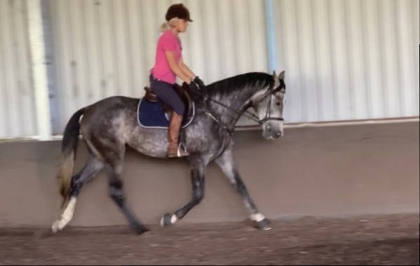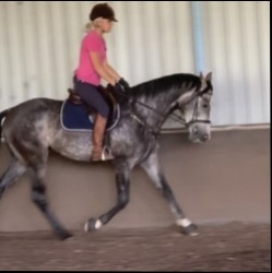 This stunning 3-year-old by Visage was bred by Jane Robinson out of her Caracas mare La Paz. Jane started him last September and reports receiving lots of compliments about his style and movement. Tate joins Valdez, another Visage gelding, on Jane's team.